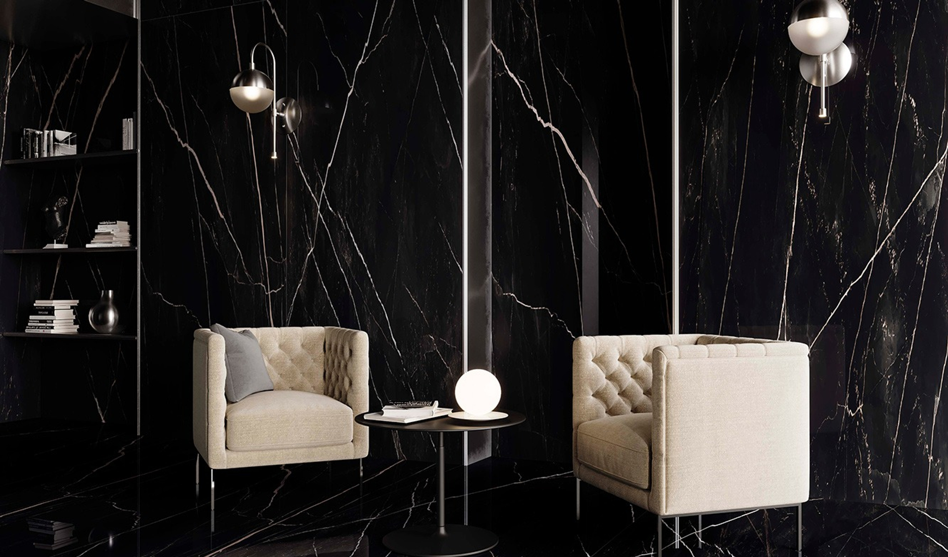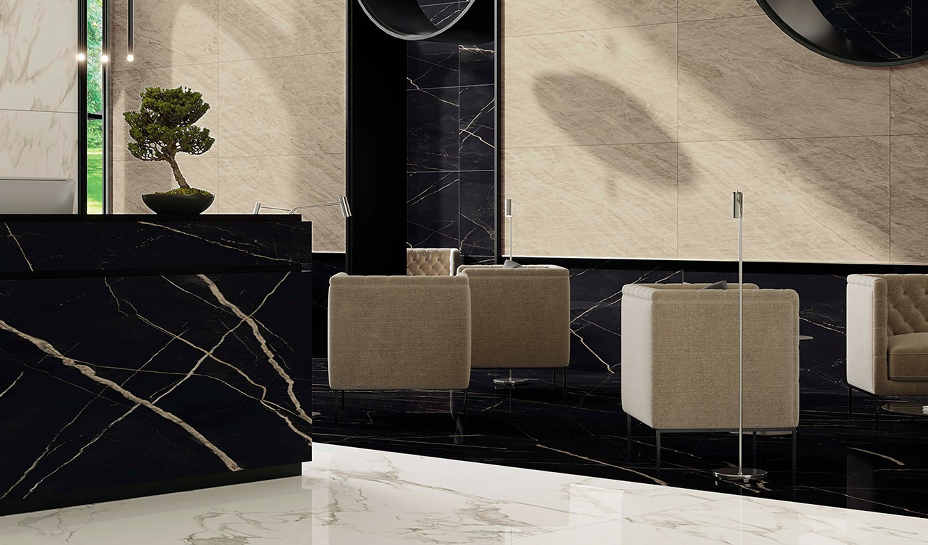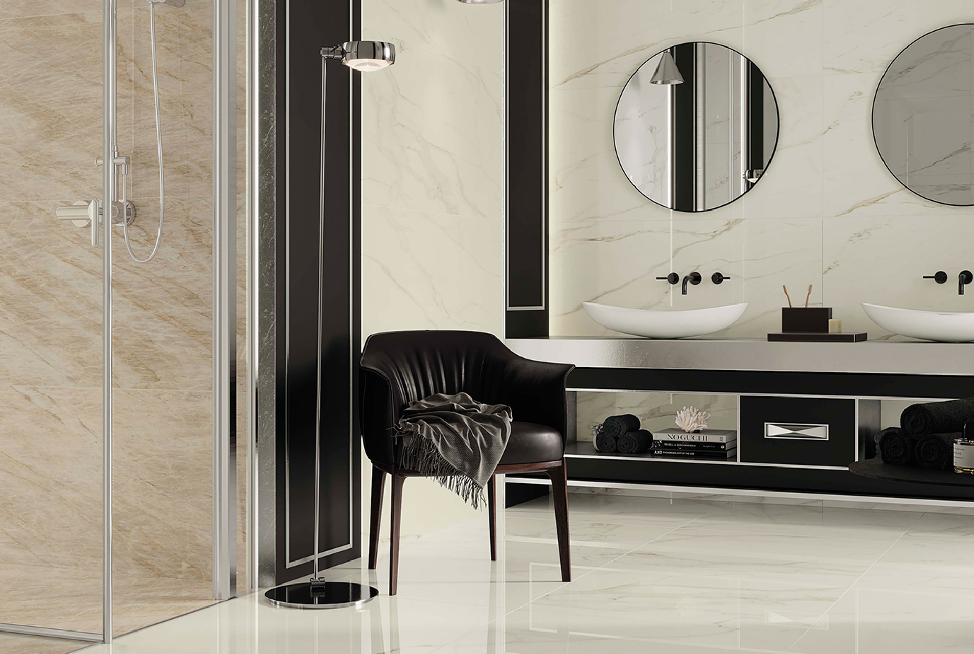 Вдохновение коллекции заключается в идеальной передаче семи классических видов натурального мрамора. Богатая цветовая гамма включает белый, черный, бежевый и серый цвета, гармонично переходящие друг в друга и создавая элегантные композиции. Коллекция доступна в двух типах исполнения поверхности: гладкой матовой и блестящей лаппатированной, подчеркивающих уникальные качества материала и придающих каждому проекту индивидуальный стиль.