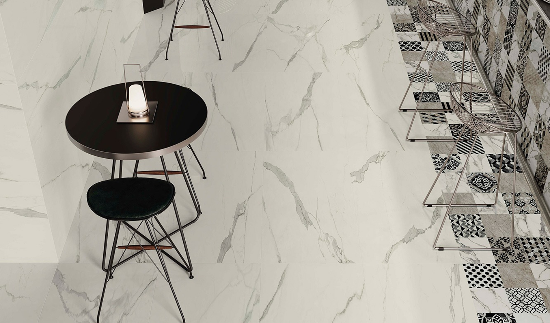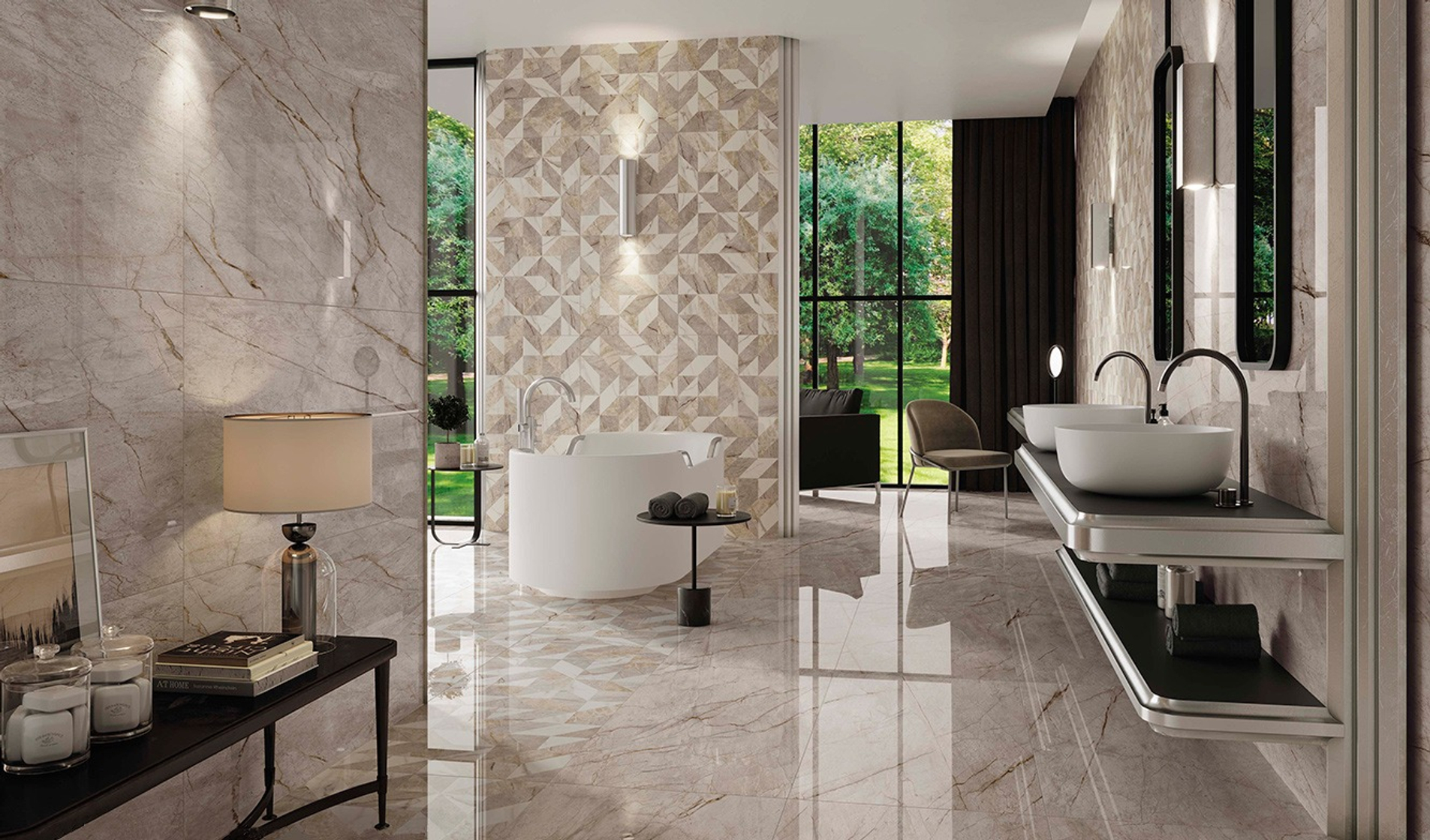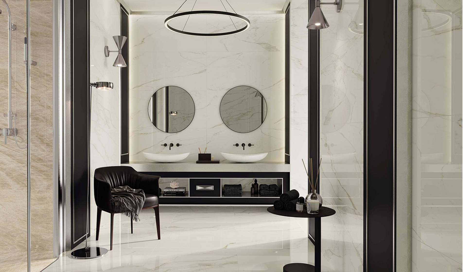 Вдохновение коллекции заключается в идеальной передаче семи классических видов натурального мрамора. Богатая цветовая гамма включает белый, черный, бежевый и серый цвета, гармонично переходящие друг в друга и создавая элегантные композиции. Коллекция доступна в двух типах исполнения поверхности: гладкой матовой и блестящей лаппатированной, подчеркивающих уникальные качества материала и придающих каждому проекту индивидуальный стиль.