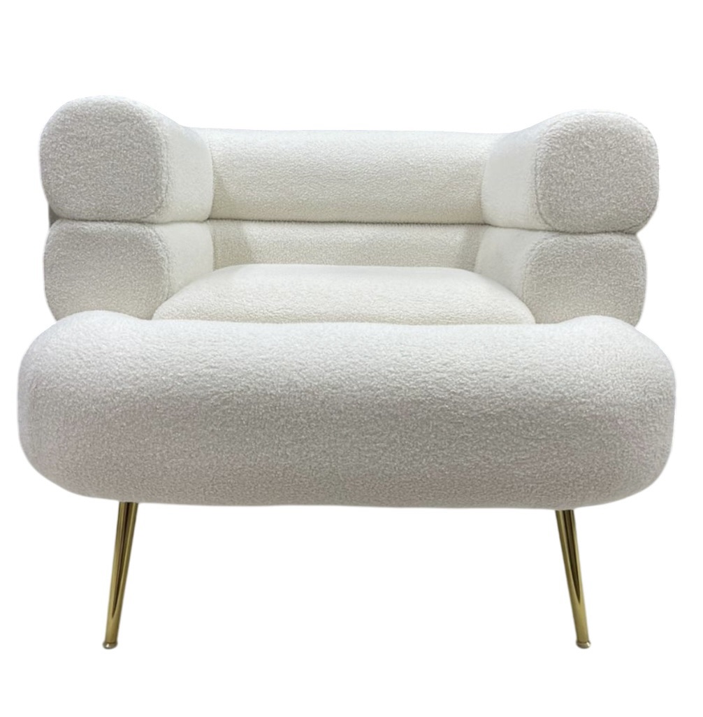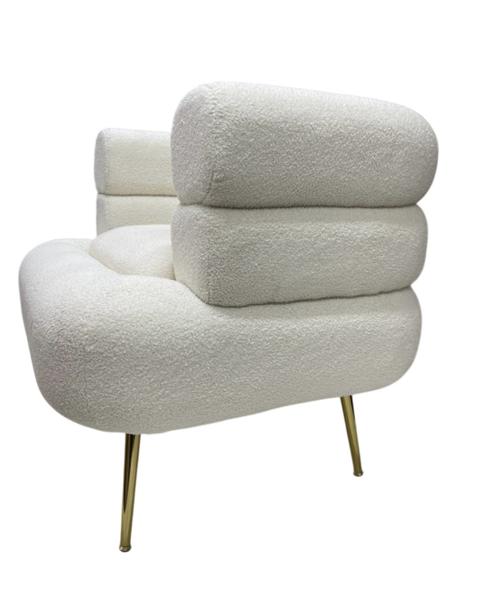 Это кресло — настоящее произведение дизайнерского искусства, которое сочетает в себе элегантность и комфорт. Обивка из ткани букле придает ему роскошный и уютный вид, создавая ощущение мягкости и тепла. Округлые формы кресла обнимают тело, обеспечивая максимальный комфорт и расслабление.